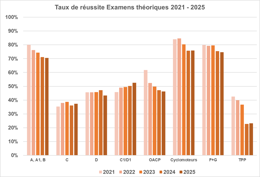 Les examens théoriques ont de nouveau augmenté dans toutes les catégories en 2025.